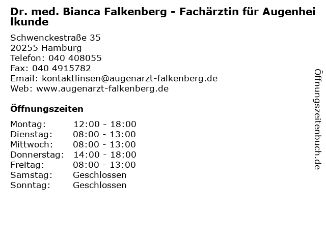 Branchen & Suchbegriffe zu Dr. med. Bianca Falkenberg - Fachärztin für Augenheilkunde:arzt, augenheilkunde, bianca, dr., fachärztin, med., sprechzeiten |