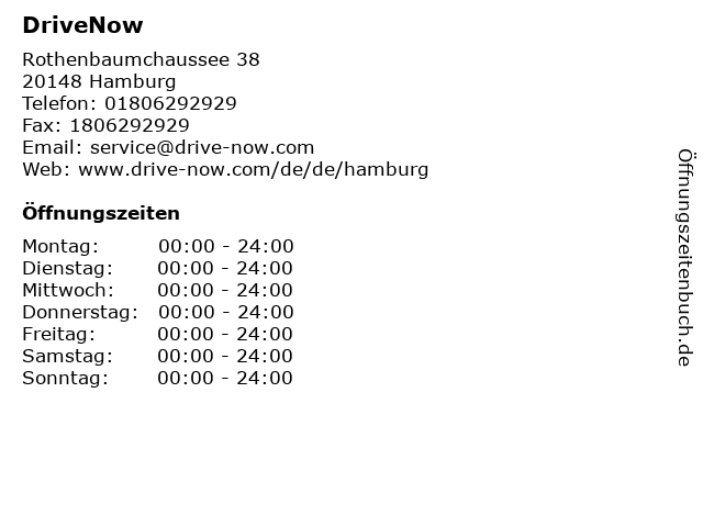 | Öffnungszeiten DriveNow in Hamburg anzeigen | |