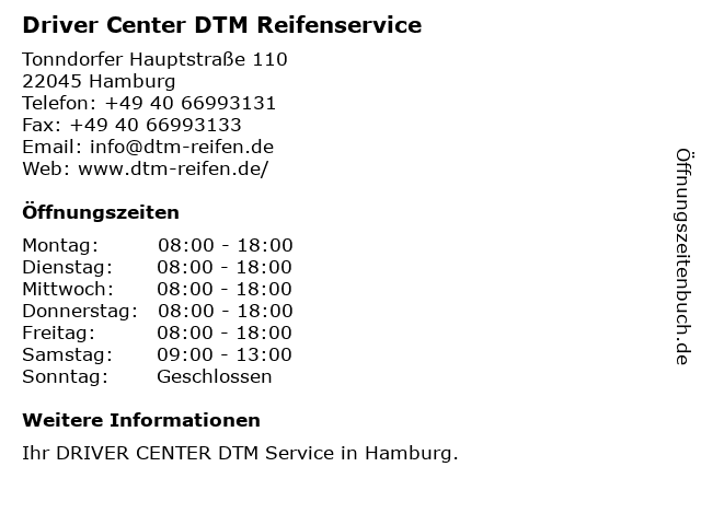 3 Premio Reifen + Autoservice BQ Auto- und Reifenservice GbR (Entfernung: 4,08 km) Haldesdorfer Straße 33-37, 22179 Hamburg 4 Driver Center Hamburg-Rothenburgsort - Driver Reifen und KFZ-Technik GmbH (Entfernung: 7,95 km) Billstraße 76, 20539 Hamburg 5 Classiv Driver - The European Car Webzine GmbH & Co. KG (Entfernung: 8,95 km) Holzdamm 28 -32, 20099 Hamburg 6 Driver Center Reinbek - Driver Reifen und KFZ-Technik GmbH (Entfernung: 9,74 km) Röntgenstraße 11, 21465 Reinbek |
