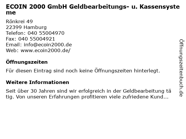 | ECOIN 2000 GmbH Geldbearbeitungs- u. Kassensysteme anrufen | |