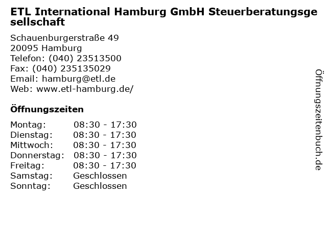 2 i.b.s. International Operative Services e.K. (Entfernung: 0,13 km) Schauenburger Str. 23, 20095 Hamburg 4 Koch & Partner GmbH Wirtschaftsprüfungsgesellschaft Steuerberatungsgesellschaft (Entfernung: 0,19 km) Rathausstr. 13, 20095 Hamburg 5 Höltzel Schwarz & Partner Steuerberatungsgesellschaft (Entfernung: 0,24 km) Hahntrapp 2, 20457 Hamburg 6 |