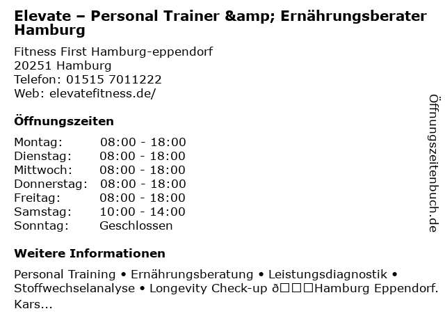 Branchen & Suchbegriffe zu Elevate – Personal Trainer & Ernährungsberater Hamburg:elevate, ernährungsberater, personal, trainer, – |