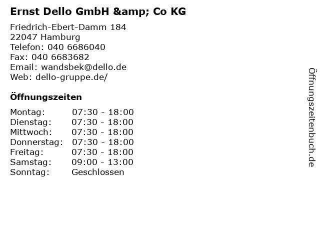 | Öffnungszeiten Ernst Dello GmbH & Co KG in Hamburg anzeigen | |