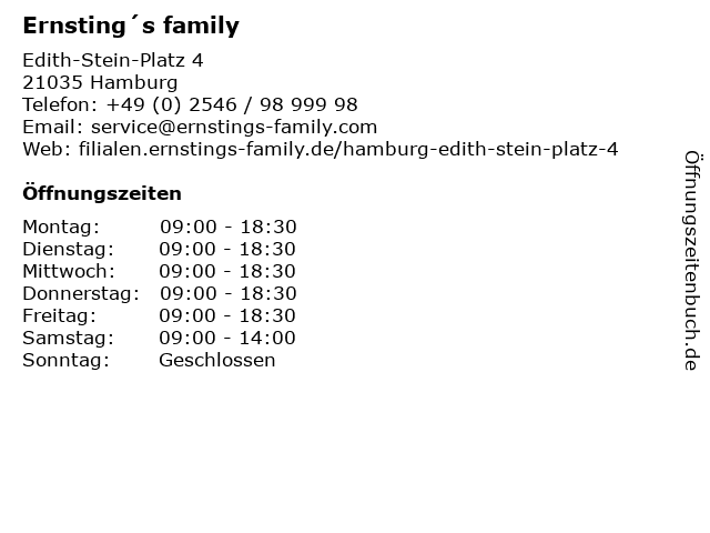 | Adresse Ernsting´s family in Hamburg anzeigen |