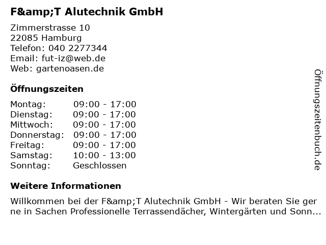 Hinweis: Willkommen bei der F&T Alutechnik GmbH - Wir beraten Sie gerne in Sachen Professionelle Terrassendächer, Wintergärten und Sonnenschutz mit dem größten Angebot und eigener Fertigung.