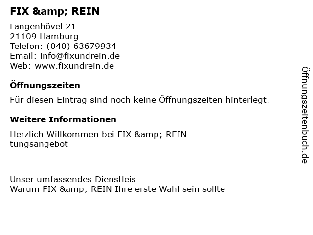 | Öffnungszeiten FIX & REIN in Hamburg anzeigen | |