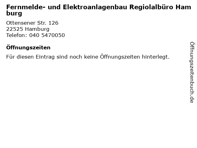 | Fernmelde- und Elektroanlagenbau Regiolalbüro Hamburg anrufen | |