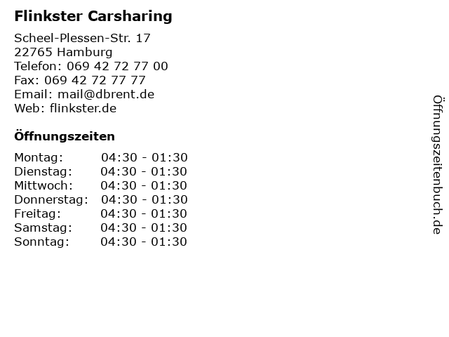 Öffnungszeiten Flinkster Carsharing in Hamburg anzeigen