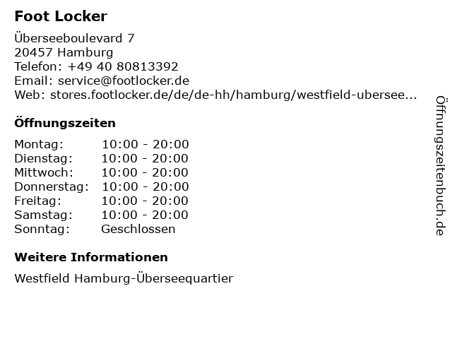 | Öffnungszeiten Foot Locker in Hamburg anzeigen | |
