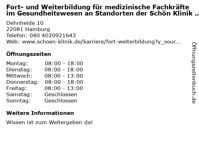 2 3 Schön Klinik Medizinisches Versorgungszentrum Hamburg Eilbek (Entfernung: 0,81 km) Grete-zabe-weg 2, 22081 Hamburg 6 |