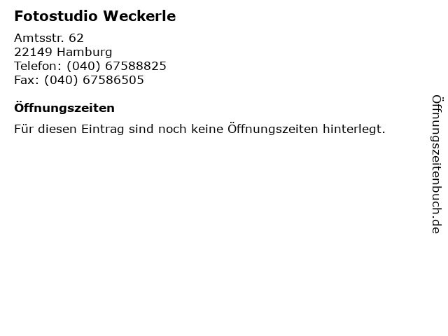 | Öffnungszeiten Fotostudio Weckerle in Hamburg anzeigen | |