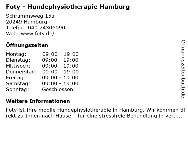 Branchen & Suchbegriffe zu Foty - Hundephysiotherapie Hamburg:alternative heilmethoden, foty, heimtierbedarf, hundephysiotherapie, massagetherapie, osteopathie, tierbetreuung, tierhandlung, tierkontrolldienst |
