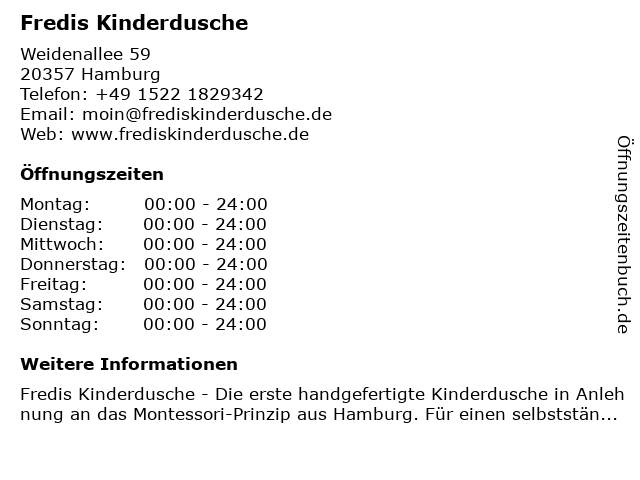 | Öffnungszeiten Fredis Kinderdusche in Hamburg anzeigen | |