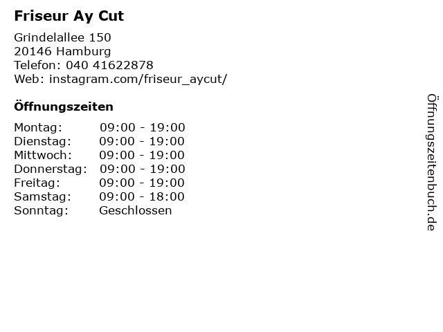 | Öffnungszeiten Friseur Ay Cut in Hamburg anzeigen | |