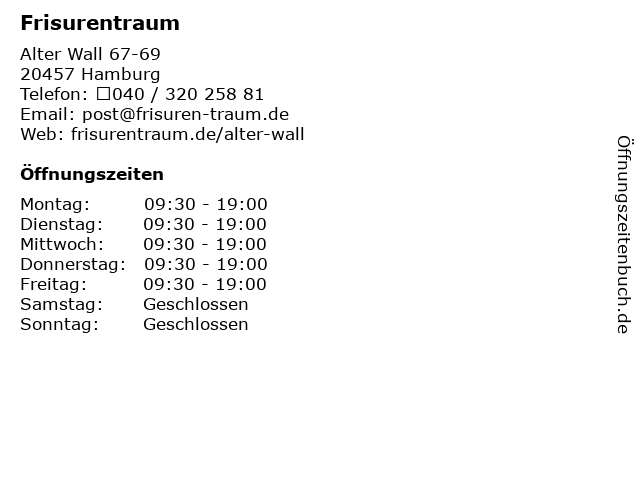 | Öffnungszeiten Frisurentraum in Hamburg anzeigen | |