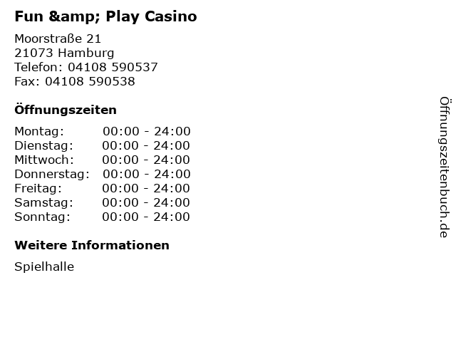 | Öffnungszeiten Fun & Play Casino in Hamburg anzeigen | |