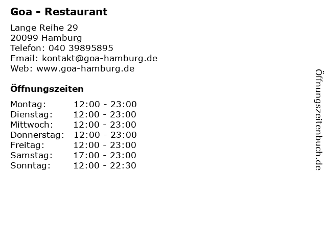 | Öffnungszeiten Goa - Restaurant in Hamburg anzeigen | |