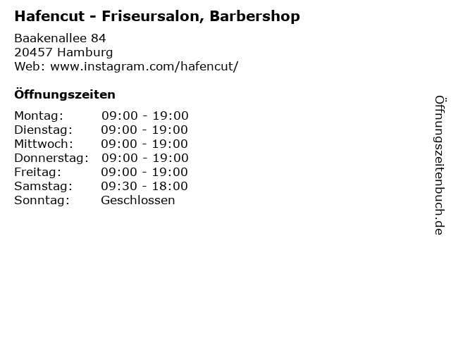 | Öffnungszeiten Hafencut - Friseursalon, Barbershop in Hamburg anzeigen | |