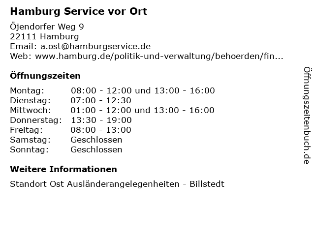 | Öffnungszeiten Hamburg Service vor Ort in Hamburg anzeigen | |