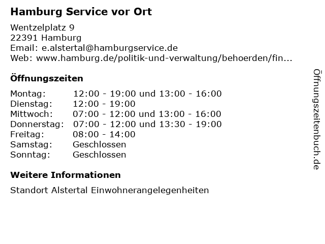 | Öffnungszeiten Hamburg Service vor Ort in Hamburg anzeigen | |