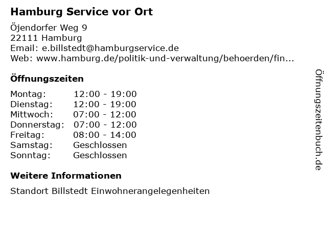 | Öffnungszeiten Hamburg Service vor Ort in Hamburg anzeigen | |
