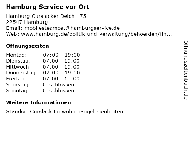 | Öffnungszeiten Hamburg Service vor Ort in Hamburg anzeigen | |