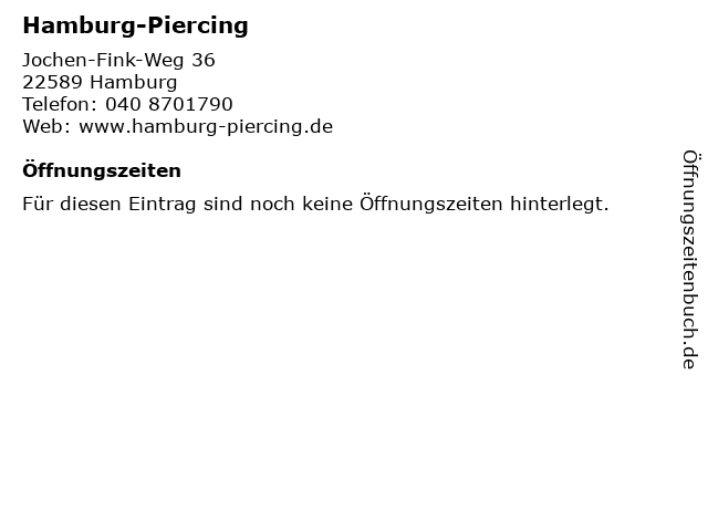 | Öffnungszeiten Hamburg-Piercing in Hamburg anzeigen | |