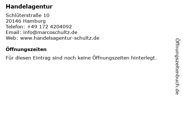 | Öffnungszeiten Handelagentur in Hamburg anzeigen | |
