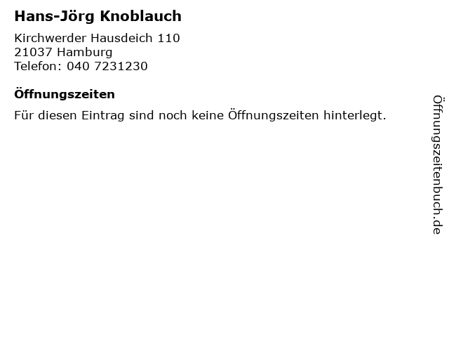 | Öffnungszeiten Hans-Jörg Knoblauch in Hamburg anzeigen | |
