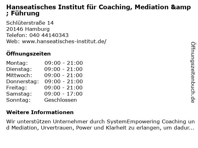 Branchen & Suchbegriffe zu Hanseatisches Institut für Coaching, Mediation & Führung:coaching, führung, hanseatisches, institut, mediation |