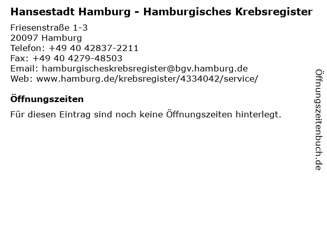 | Hansestadt Hamburg - Hamburgisches Krebsregister anrufen | |