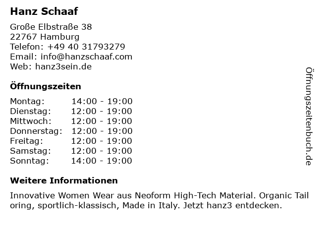 | Öffnungszeiten Hanz Schaaf in Hamburg anzeigen | |