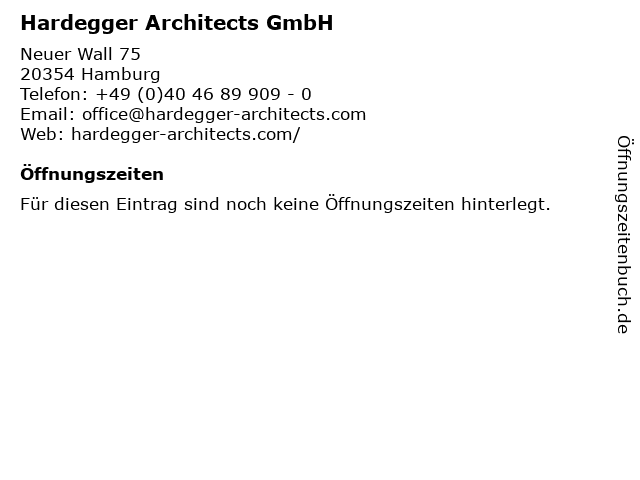 | Öffnungszeiten Hardegger Architects GmbH in Hamburg anzeigen | |