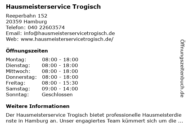 | Öffnungszeiten Hausmeisterservice Trogisch in Hamburg anzeigen | |