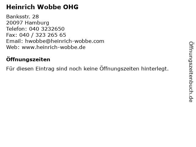 | Öffnungszeiten Heinrich Wobbe OHG in Hamburg anzeigen | |
