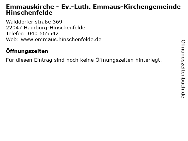 | Emmauskirche - Ev.-Luth. Emmaus-Kirchengemeinde Hinschenfelde anrufen | |