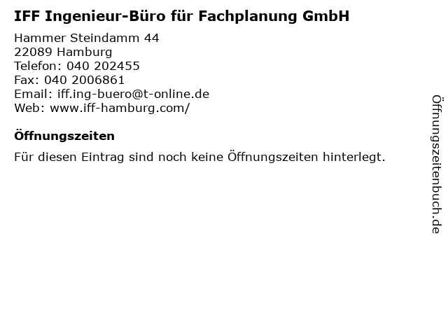 | IFF Ingenieur-Büro für Fachplanung GmbH anrufen | |