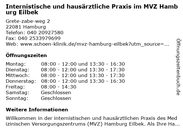 Branchen & Suchbegriffe zu Internistische und hausärztliche Praxis im MVZ Hamburg Eilbek:eilbek, hausarztpraxis, hausärztliche, internistische, mvz, praxis |