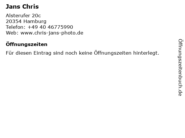 | Öffnungszeiten Jans Chris in Hamburg anzeigen | |