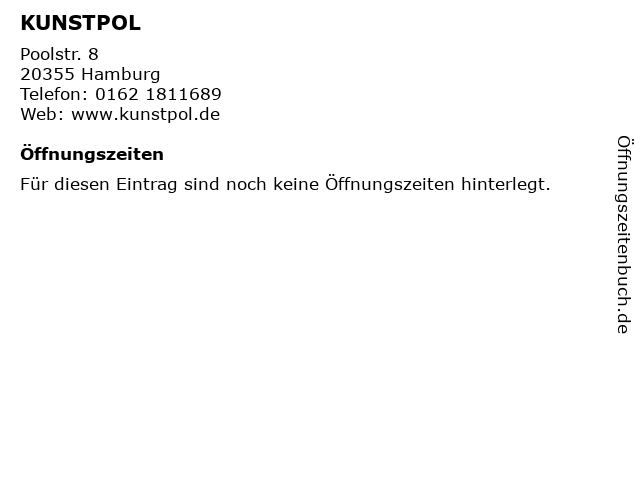 | Öffnungszeiten KUNSTPOL in Hamburg anzeigen | |