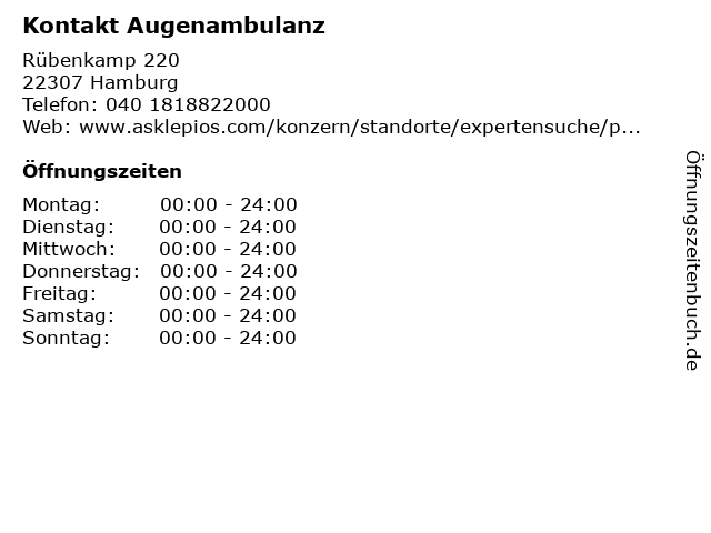 | Öffnungszeiten Kontakt Augenambulanz in Hamburg anzeigen | |