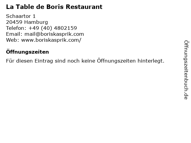| La Table de Boris Restaurant anrufen | |
