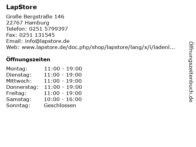 | Öffnungszeiten LapStore in Hamburg anzeigen | |