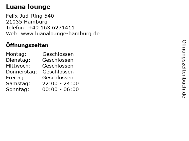 | Öffnungszeiten Luana lounge in Hamburg anzeigen | |