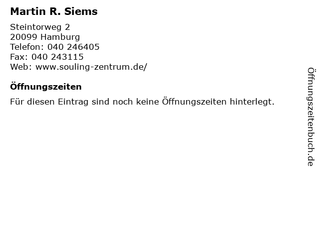 | Öffnungszeiten Martin R. Siems in Hamburg anzeigen | |