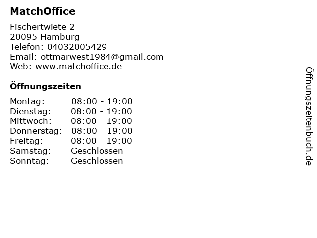 | Öffnungszeiten MatchOffice in Hamburg anzeigen | |