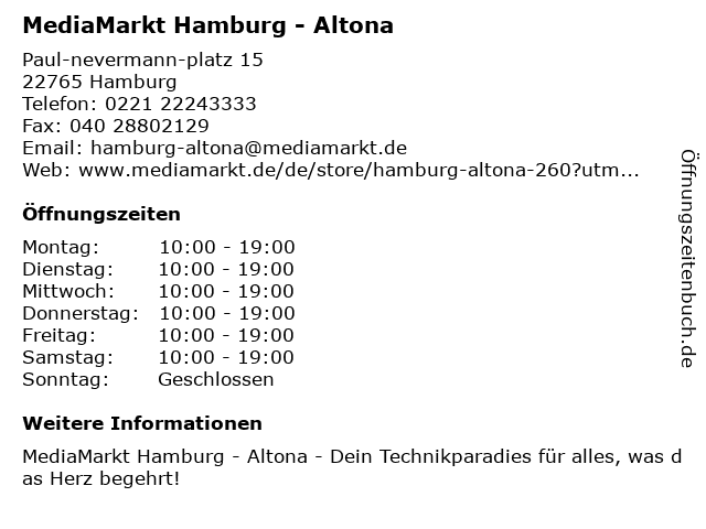 Öffnungszeiten MediaMarkt Hamburg - Altona in Hamburg anzeigen | |