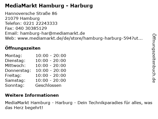 Öffnungszeiten MediaMarkt Hamburg - Harburg in Hamburg anzeigen | |