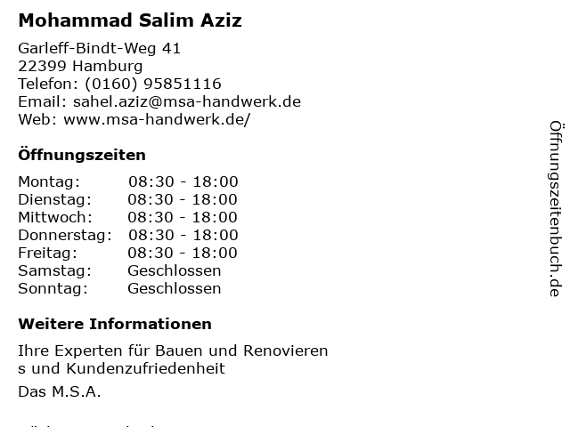 | Adresse Mohammad Salim Aziz in Hamburg anzeigen |