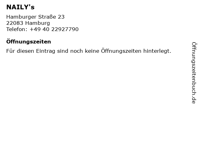 | Öffnungszeiten NAILY's in Hamburg anzeigen | |